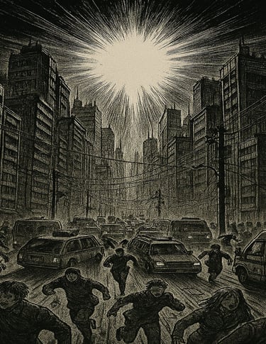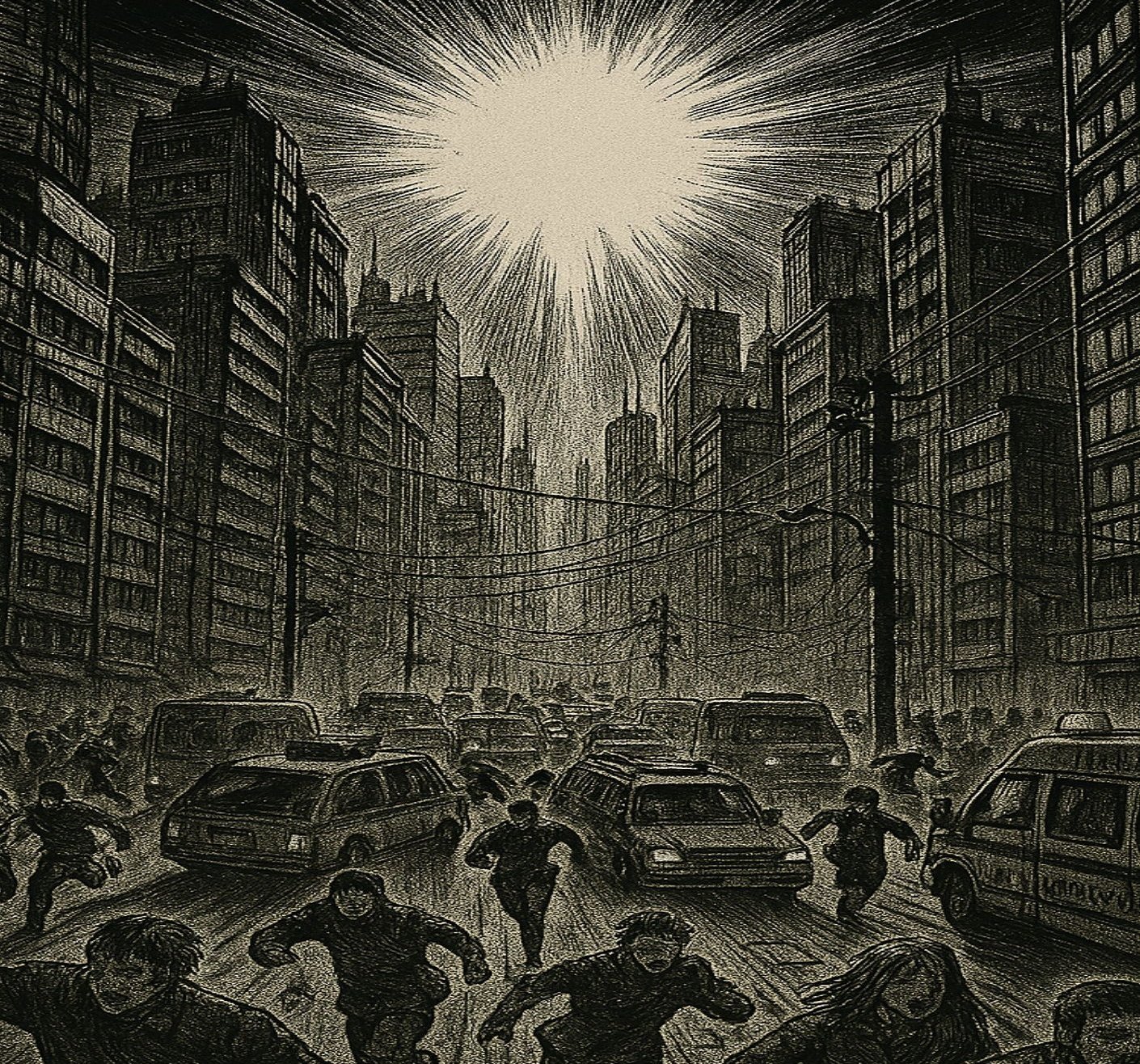 De repente, um clarão tomou conta do céu. Por alguns instantes, todo o planeta foi banhado por uma luz tão intensa que parecia que o próprio Sol havia se multiplicado. Na manhã seguinte, o mundo despertou sob uma luminosidade anormal, uma claridade branca e contínua que cobria absolutamente tudo. O calor era sufocante, e rapidamente se tornou insuportável.
