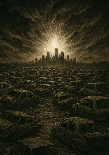 Em poucos meses, o caos se instalou. Regiões inteiras se tornaram inabitáveis, forçando deslocamentos em massa em busca de locais menos quentes e mais estáveis. O planeta não apenas queimava — ele reagia. Um impacto magnético colossal distorceu os campos da Terra e destruiu toda forma de tecnologia. Nenhum dispositivo, máquina ou rede de comunicação sobreviveu. A humanidade, impotente, retornou ao instinto mais primitivo: sobreviver com o que ainda restava.