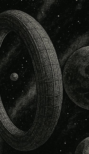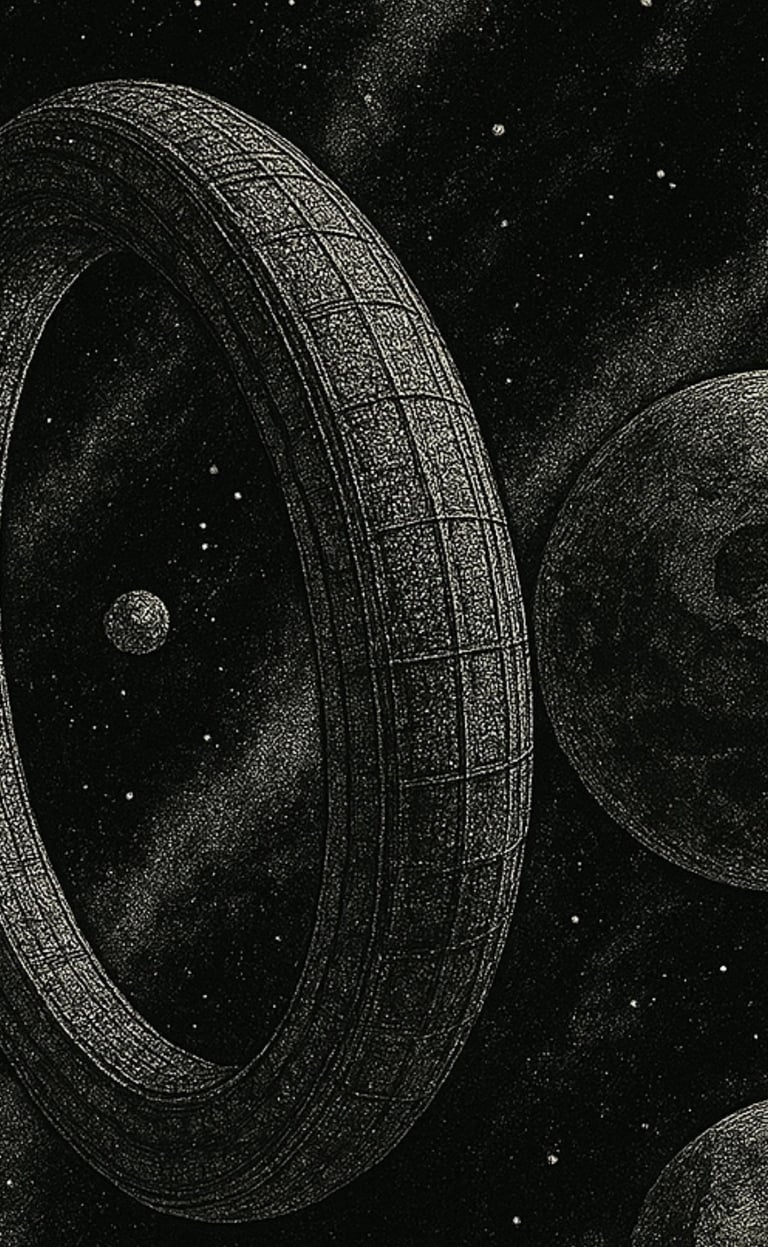 Era tão vasta que parecia ultrapassar a própria curvatura do planeta — um anel monumental, como o de Saturno, orbitando lentamente ao redor da Terra.