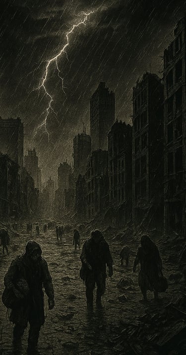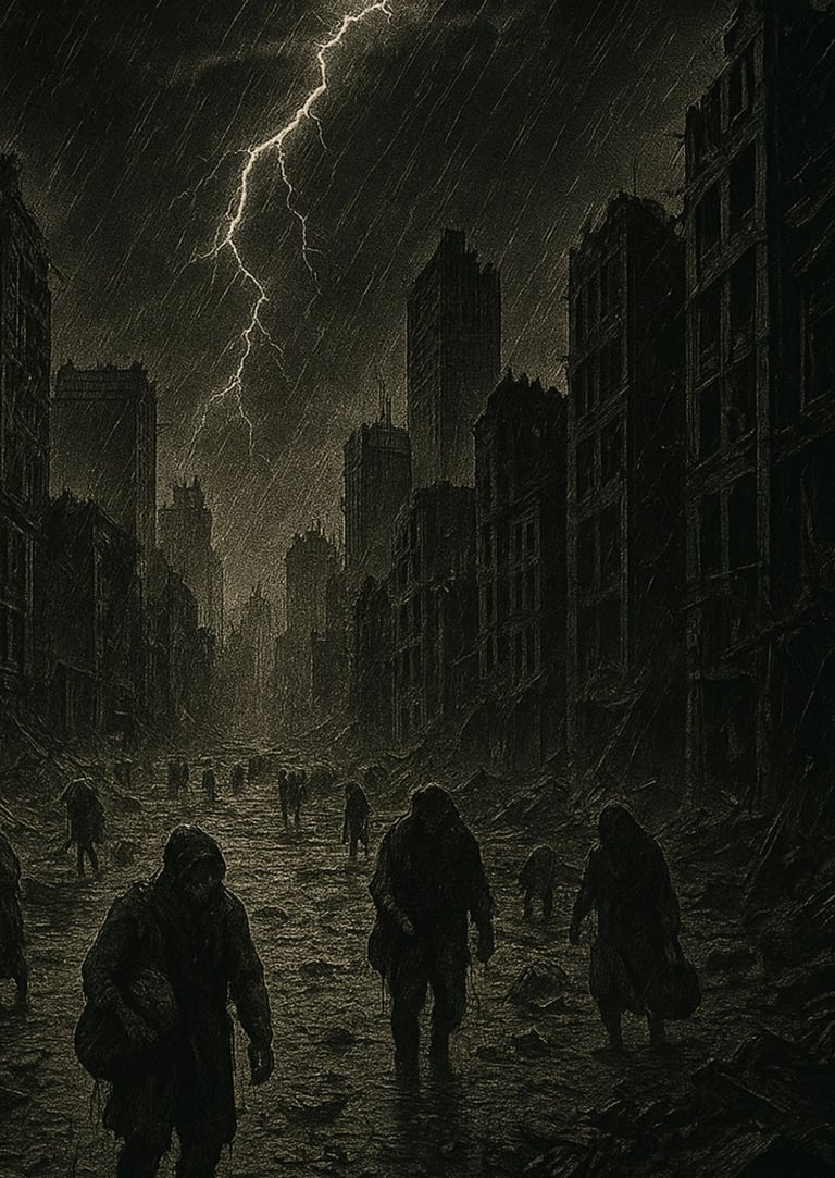 Sem eletricidade, sem governos e sem estrutura, o mundo mergulhou em uma era de colapso. Povos inteiros desapareceram. Cidades se tornaram ruínas fumegantes. E, em poucos anos, a civilização havia cedido à desesperança, aguardando apenas o inevitável fim.